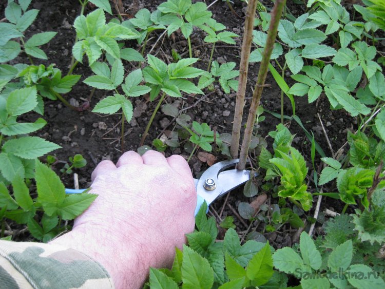 Шаг 1. Сначала при помощи секатора, срезаем поросль под самый корень.