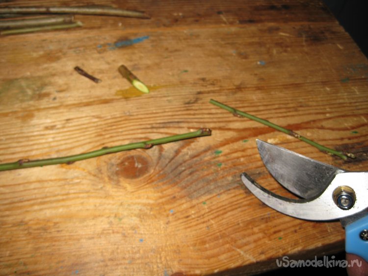 Кстати, если на конце заготовки есть ответвления, их можно обрезать до длины 1,5-2 см, и оставить. За них потом будет удобно подвязывать рассаду.
