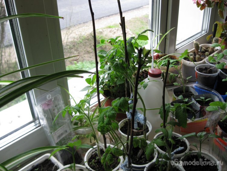 Так, часто бывает, что рассада уже выросла и ее пора высаживать, а погода, как назло, устанавливается холодная или даже с заморозками (прямо как в этом году). Поэтому приходится ждать наступления тепла. Рассада же при этом продолжает расти и зачастую чересчур вытягивается. Конечно, страшного в этом ничего нет, но такая рассада начинает нуждаться в небольших подпорках.