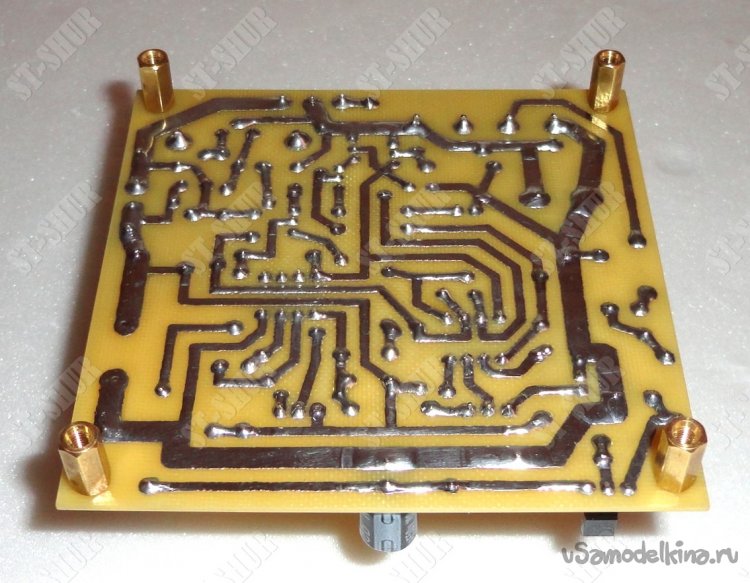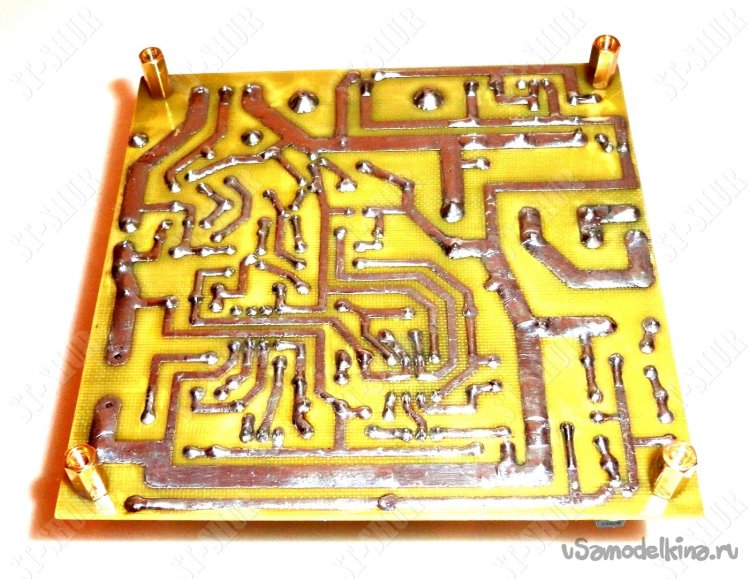 После промывки и проверки работоспособности, платы со стороны дорожек были обработаны электроизоляционным лаком «PLASTIK-71».