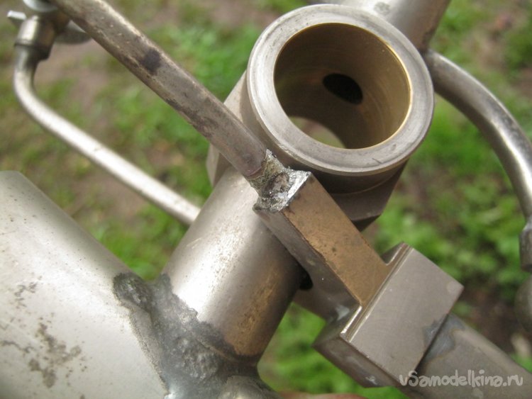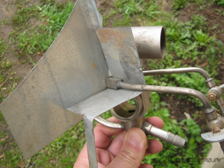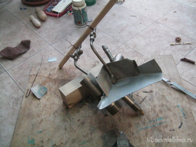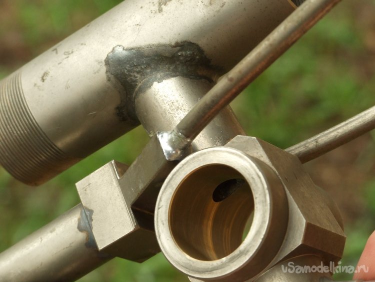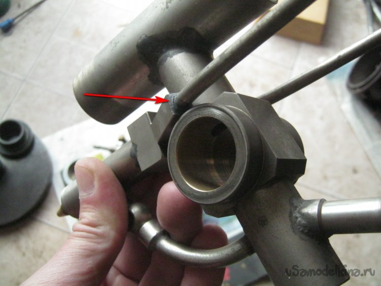 Фото 10. Остывающий корпус горелки. Видно место пайки. Сразу после охлаждения – отмывка кислого флюса. Через час-полтора он уже начинает подтравливать металл.