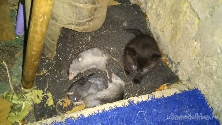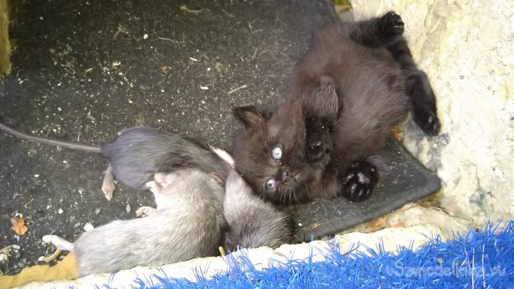Вот этот крохотный зверёныш, пока ещё без имени и с неопределившимся цветом глаз, уже хищник, рычит на крыс и выпускает коготки ))