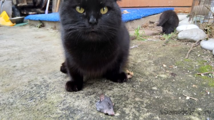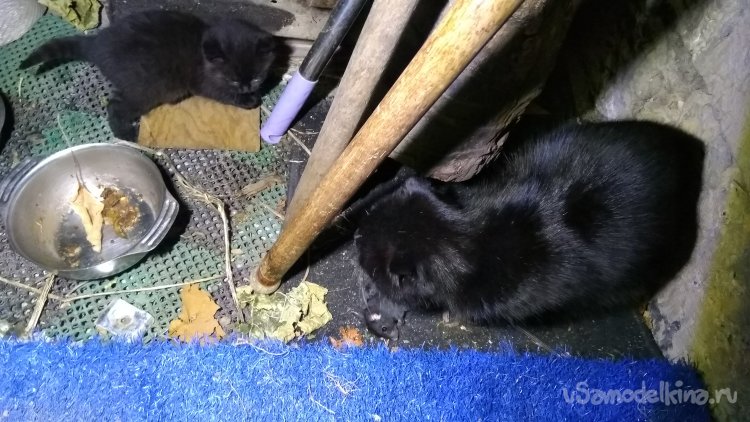 Кошатики мои время не теряют, для них это и забава, и еда. Пока я ходил делал, они и сами поймали.