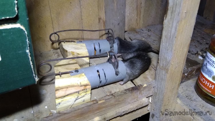 Работает надёжно такая крысоловка, главное вы про неё не забудьте, иначе крыска испортится и будет пахнуть. Отравы не применяю, ввиду наличия животинок которые могут поймать наевшуюся чего-попало крыску, клеевые ловушки крысы научились обходить. Я, кстати, почему знаю, что по трубам лазят на трёхметровую высоту они легко. Увидал как лезет, намотал пищевую плёнку на вертикальную трубу и намазал клеем для крыс. Одна поймалась довольно быстро, стала визжать, вторая прямо поверх этой приклеенной промчала вверх и после этого клей перестал работать, они поняли. Аналогично и с фанеркой на полке, одна попалась, все остальные поняли, что это, и обходят, а с такой трубой и куском деревяшки, крысы видимо не успевают другим рассказать, что они попались, ну и следующие голову в петлю суют. И даже в рядом стоящую попадаются.