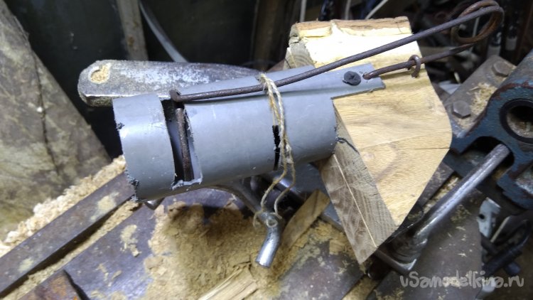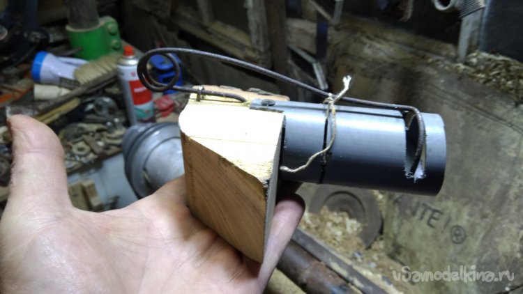 Самая сложная деталь — это пружина, начинать изготовление надо с неё. Проволока так и называется, Сталька, на ней обычно кабели вешают, что через дорогу протягивают.