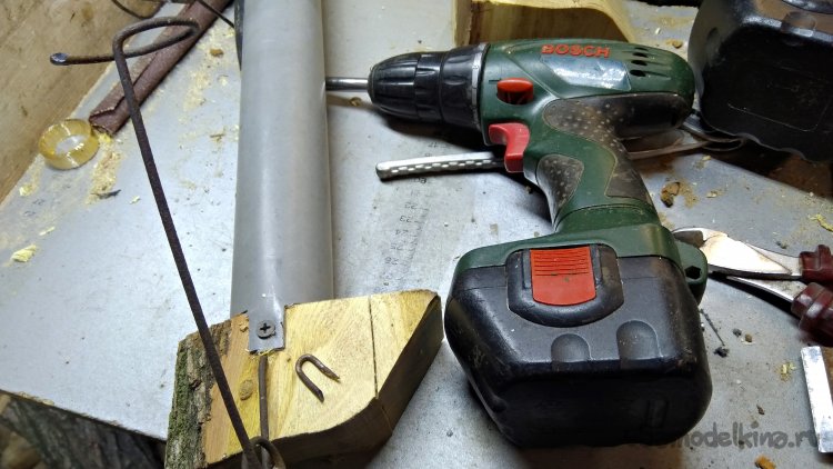 Самый простой и доступный материал для крысоловок, это канализационная труба 50 мм. Обрезки деревяшек, несколько саморезов и кусок сталистой проволоки диаметром три миллиметра. Ну ещё верёвочка и приманки расходный материал, хотя приманки использую до полного их высыхания и далее, сухарики тоже для крысок лакомство, особенно с каплей подсолнечного масла.