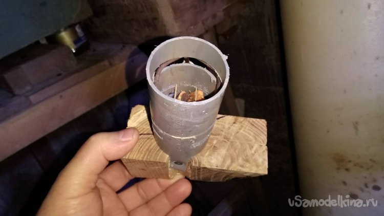 Вторая серия крысоловок, пружина одним концом вставлена в просверленное отверстие, от сдвига вбок её удерживает пара саморезов.