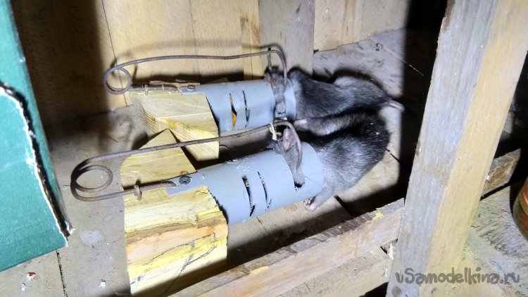 По осени, когда начинаются дожди и в полях становится неуютно крыскам, они начинают переселяться поближе к теплу и к еде. Мои кошатики на страже, но не всегда могут поймать хитрых и проворных незваных гостей. Крысы легко лазают по трубам вертикальным, хоть пластиковым хоть железным, по стенке из шлакоблоков в любом направлении гуляют как по паркету. Причём легко по диагонали стены могут бегать. Ну в общем зверюги ещё те. Вот на помощь моим кошатикам, а вернее для защиты своих закромов, сделал ловушки. Крысы способны даже под напряжением провода обгрызать, а это опасно и чревато не столько для них, сколько для меня. Всяческие заготовки на зиму хоть и закатаны железными крышками, но есть и пластиковые, вот их они грызут легко, да и вообще неразборчивы что грызть, у них зубы растут всю жизнь. И они просто вынуждены их обо что-то стачивать. Бетон тоже грызли, мне пришлось их любимые лазейки бетонировать раствором с битым стеклом. Осколки острые им не по вкусу, причём находил следы крови от того что они пытались восстановить свои охотничьи тропы.