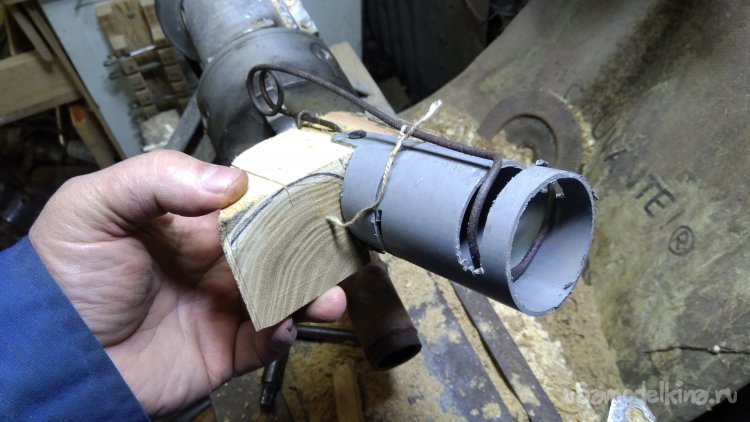 Годятся любые обрезки, для удобства желательно 50 мм толщиной, по диаметру трубы, но и врезать ушки в дерево легко, стамеской шесть секунд.