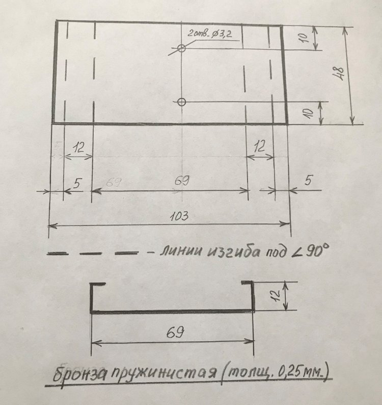 2). Кусочек пружинистой бронзы размерами 103х48 мм.