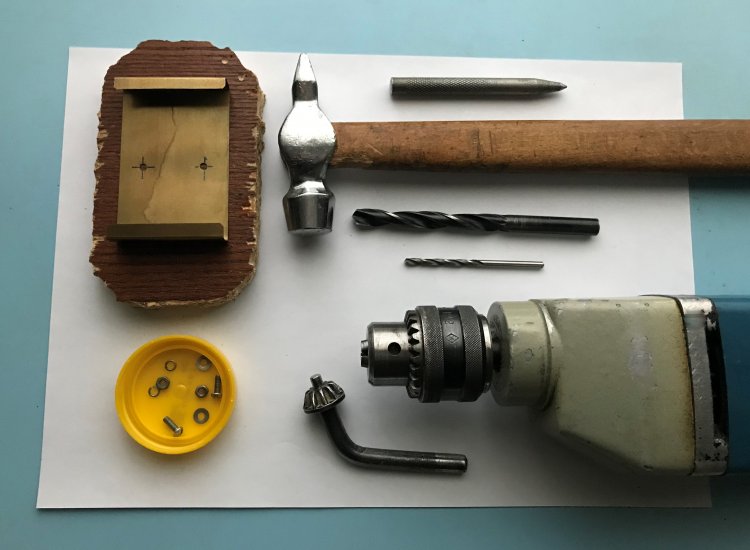 Центры отверстий держателя накерниваются и сверлятся сверлом диаметром 3,2 мм. Лёгкая зенковка (снятие заусениц) выполняется вручную сверлом большего диаметра (5 … 8 мм).