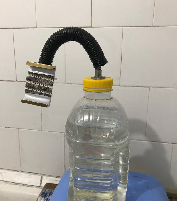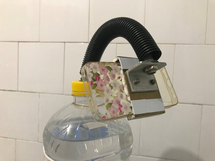 Для повышения устойчивости штатива воду в бутыль рекомендуется заливать до горлышка. Стальные винты М3х12, скрепляющие гофр и жёлтую крышку, троекратно покрываются влагозащитным лаком или заменяются латунными. Выступающую армированную часть гофра над жёлтой крышкой можно закрыть кусочком чёрной ПВХ-трубки диаметром 24 мм. При отсутствии такой трубки, можно изготовить декоративный закрывающий цилиндр (высотой 25 ... 30 мм) из нескольких витков чёрной изоленты.