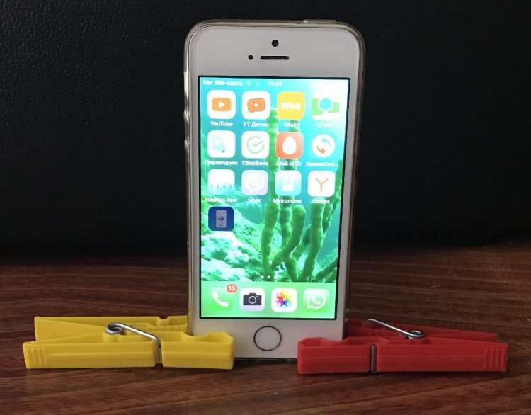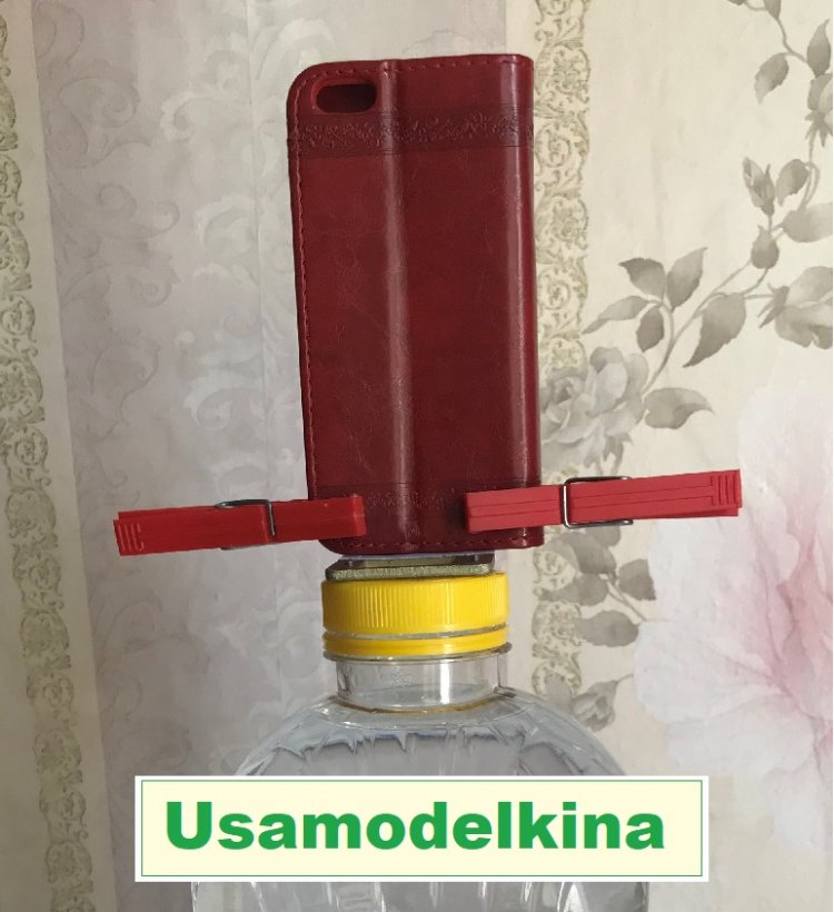 Итак, штатив для айфона можно изготовить за 1 минуту, а если сильно постараться, то и быстрее. Для ШдА автором использованы пластмассовые бельевые прищепки (см. рисунок 4).