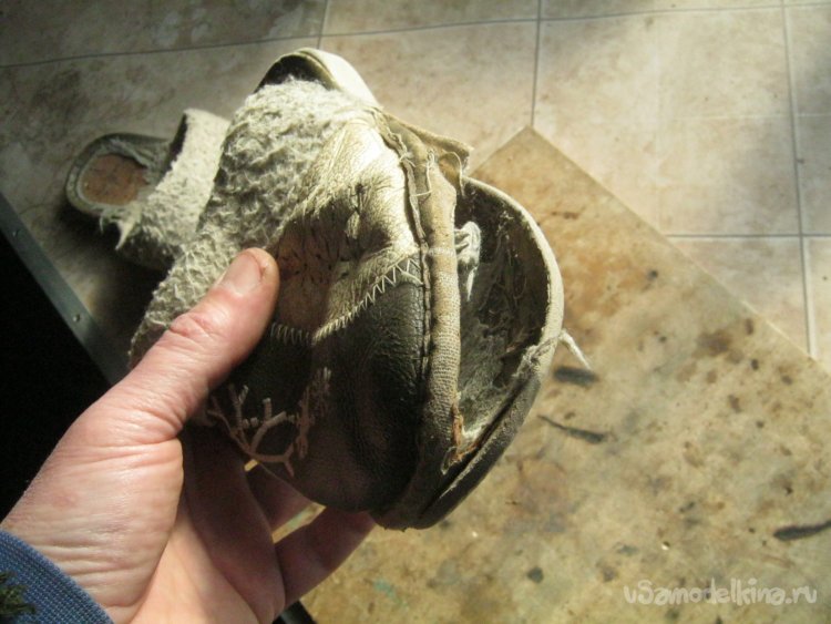 Домашние тапки-шлепанцы ребенка «запросили каши» (Фото 2). Крепкий еще кожаный верх и относительно целая подошва говорили – еще поживем, но толику внимания – вынь да положь.