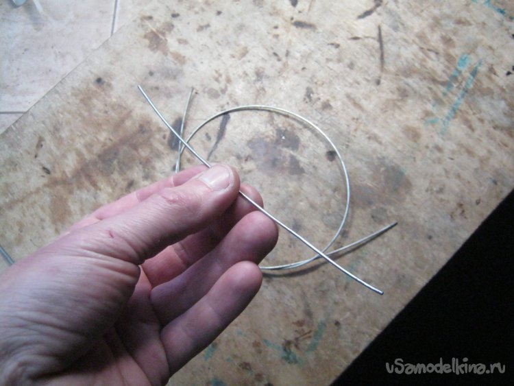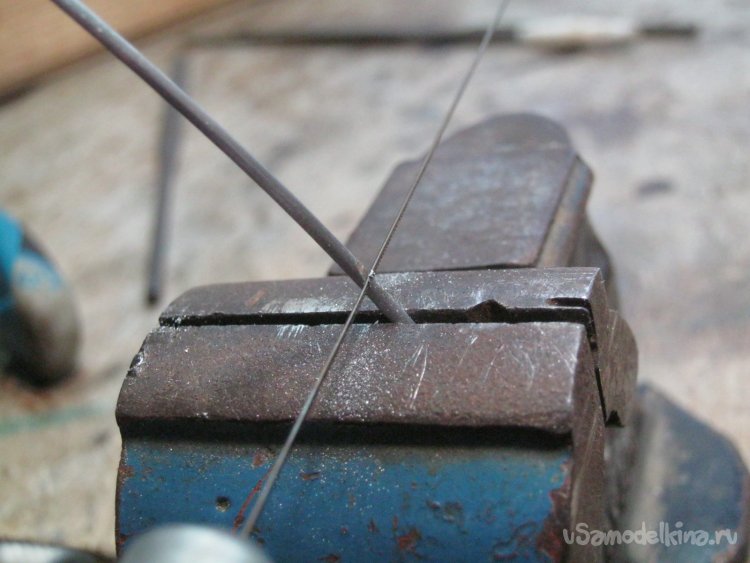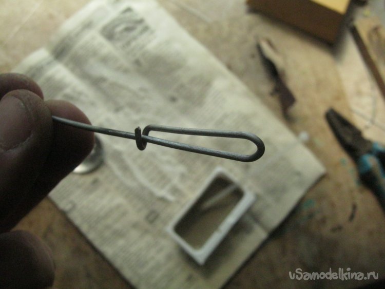 Фото 9. Заготовка – припасенная для этих целей пружинящая стальная проволочина подходящей толщины от каркаса детской матерчатой коробки для игрушек.