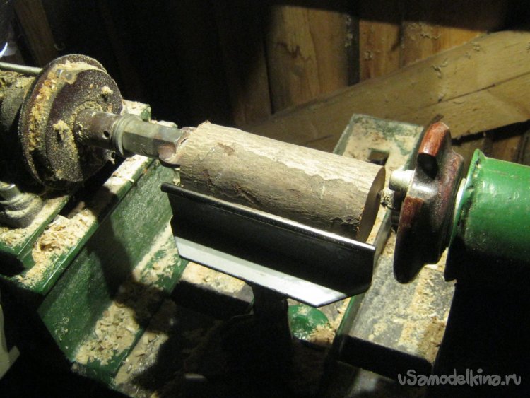 Фото 14. Чурбачок установленный в станок для точения «в центрах».
