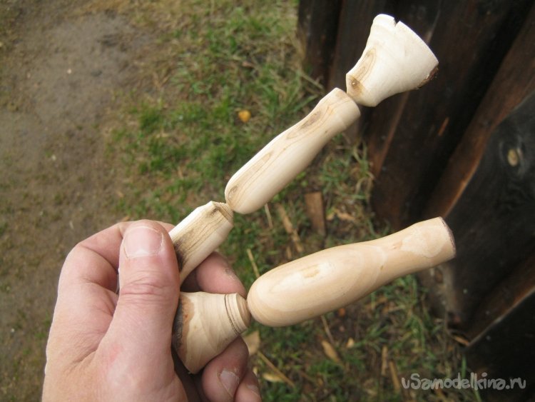 Фото 15. Выточенные заготовки ручек. Та что покрупнее – для нашего шила.
