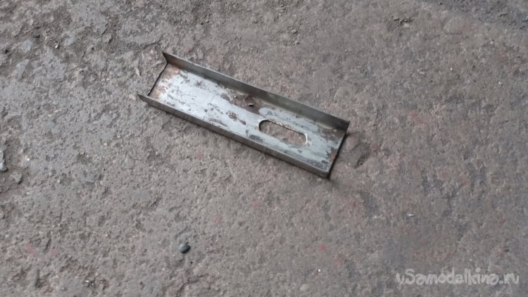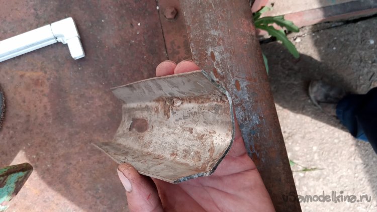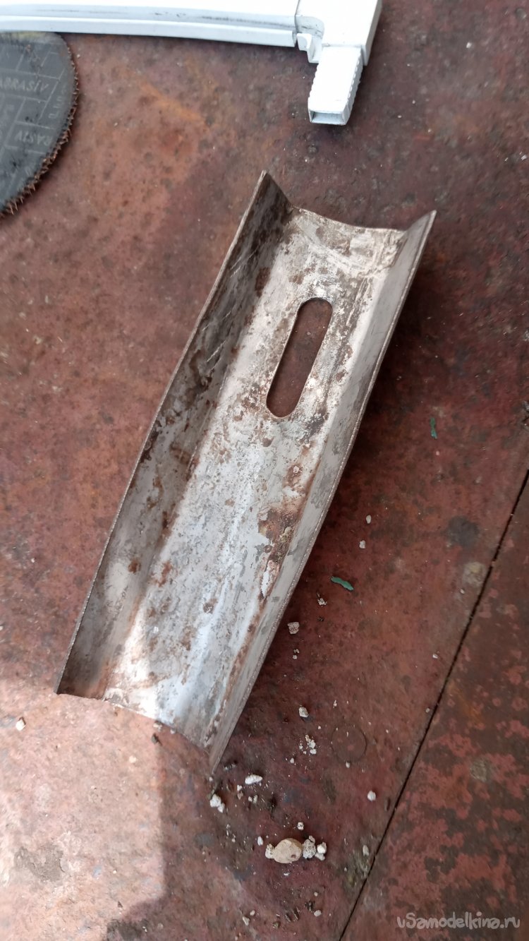 Видимо, ранее это был какой-то кронштейн для крепления чего-то с возможностью регулировки (о чём свидетельствует длинная прорезь под болт М12, который и был в ней закручен). Но нашёл я его уже обрезанным: