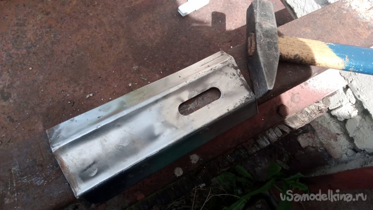 Эх-х... Сейчас бы пригодилась одна из моих кувалдочек. Ну до ладно. Нет их под рукой! обойдёмся молотком, хотя, нержавейка не особо легко гнётся..