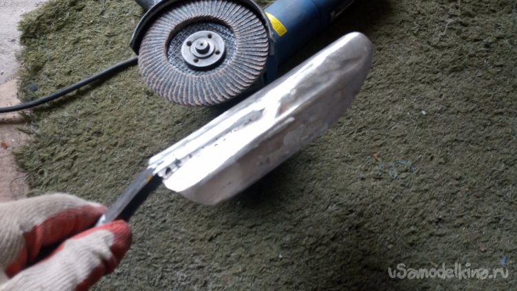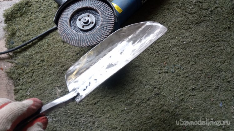 Ну что-ж. Можно обрабатывать. Чуток зачистил зачистным кругом и слегка прошёл лепестковым. Делаю не фетиш, а рабочий инструмент, так что сильно не рихтовал и не выглаживал. Одновременно заточил и придал окончательную форму: