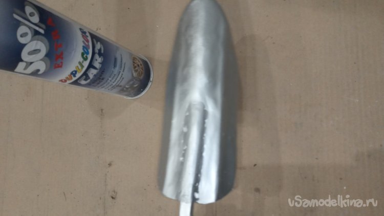 Далее, я грубо придал этому "жёлобу" форму совка, прогнув середину в нижней части: