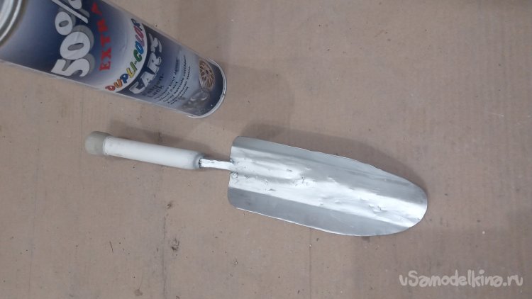 Всё! Садовый совок готов. На весь процесс ушло меньше часа времени! Если бы не отвлекался на съёмку - уложился-бы минут в двадцать.(Да! Съёмка при таких работах отбирает много времени. Не забывайте, что мне каждый раз нужно снять маску/очки, снять перчатки, помыть руки, насухо вытереть, взять телефон и щёлкнуть.)))
