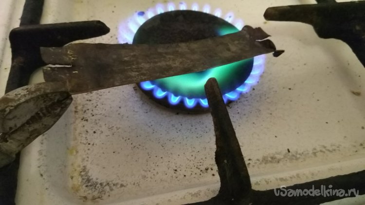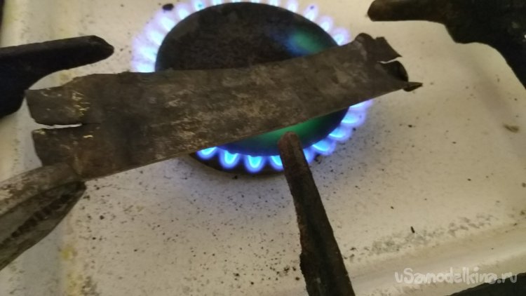 С металлом у меня возникли проблемы, латунь которую хотел использовать, оказалась бронзой. Ни о какой резке её и ковке речи быть не может, она колется, слишком крепкая. Когда отрезал полоску от той штучки что нашёл в прибое на море, даже и не думал что это бронза, думал просто нагартованная латунь, края были замяты каральками. Но когда отжёг на газовой плите до красного каления, и твёрдость не поменялась. Вот тут пришлось идти на поиски замены.