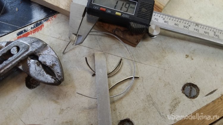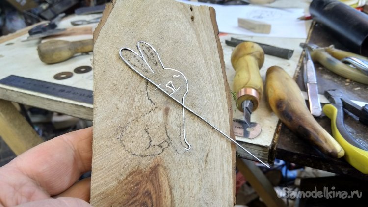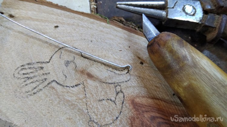 Пробные надрезы по дереву ножом, и в надрезы забивается проволока.