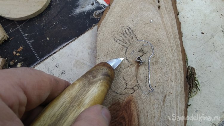 Зачастую на закруглённых участках, например, резать двигая нож вдоль поверхности нельзя, могут образоваться сколы, надо именно пыром прорезать поверхность и углубляться в дерево на пару миллиметров.
