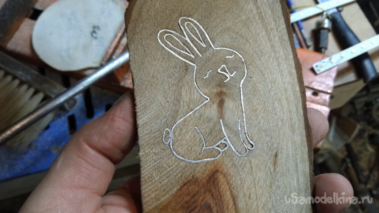 После лёгкой шлифовки и мытья дощечки, прогладил горячим утюгом деревяшку, чтобы поднять замятую древесину.