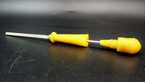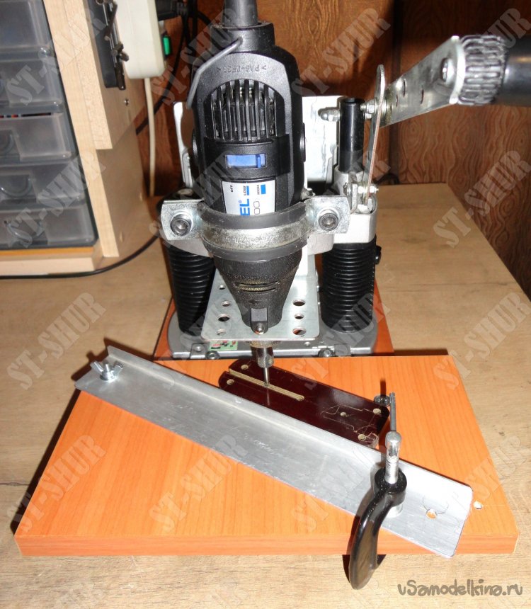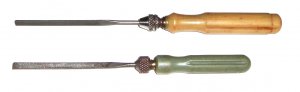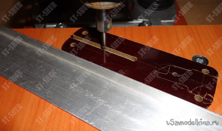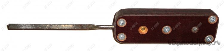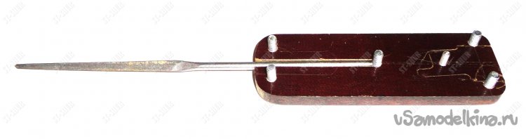 С помощью МФИ «Dremel» на стойке, с использованием фрезы по металлу (с шарообразной головкой), был проточен паз (шириной около 3,5мм) для хвостовиков надфилей. С помощью винта М4 с «барашком» надфиля достаточно надежно фиксируются в рукояти и при необходимости быстро заменяются.