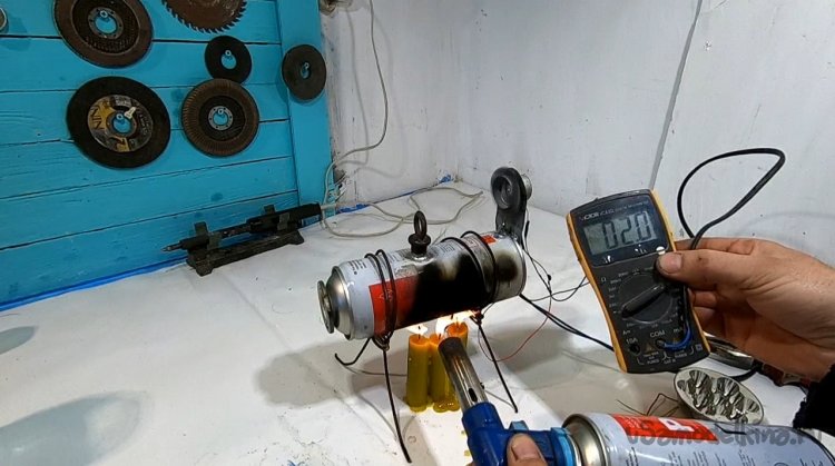 Испытания начал со свечек, находил видео, где такая самоделка работает всего на двух свечах. Но мне не хватило даже 4 свечей, чтобы крыльчатка стала крутиться. Вода кипела, но нужный напор пара получалось получить только при подпитке горелкой. Ну что ж, пор раскочегарить котел как следует!