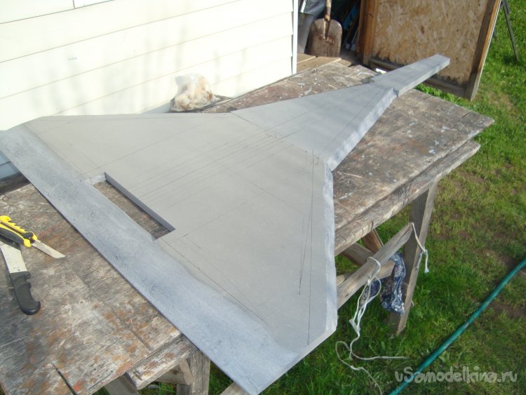 Для начала выкроил из оставшихся листов утеплителя. заготовки для несущей плоскости модели.