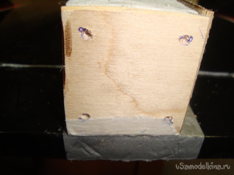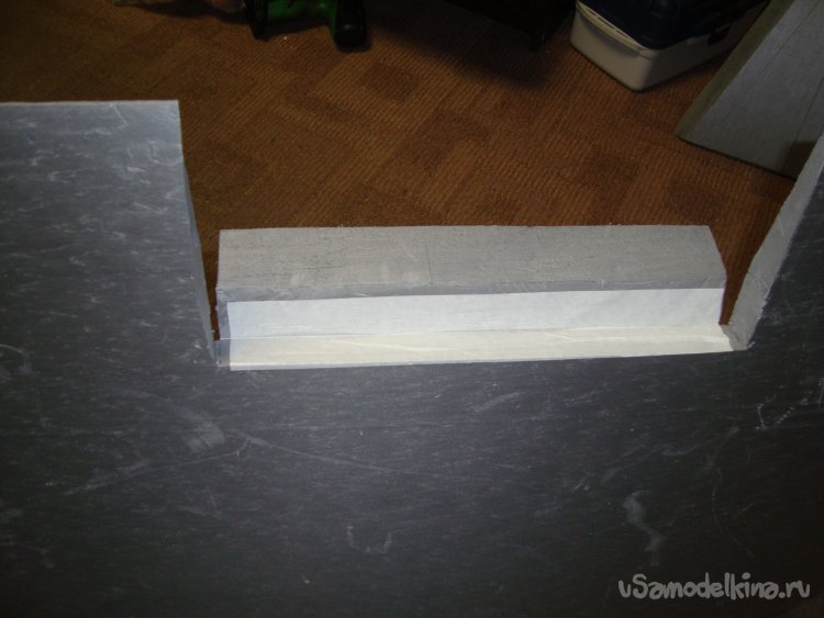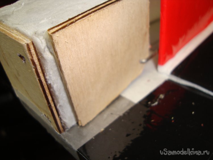 В места установки шасси, вклеил кусочки 3 мм. фанеры.