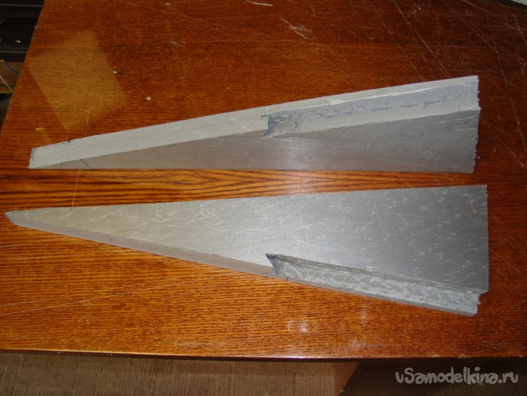 Сделал прорези в наружной обшивке крыла, для установки килей.