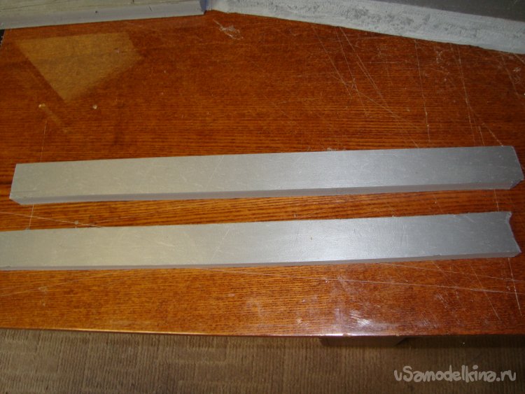 В заготовках сделал вырезы, в которые будет вставляться остекление кабины.