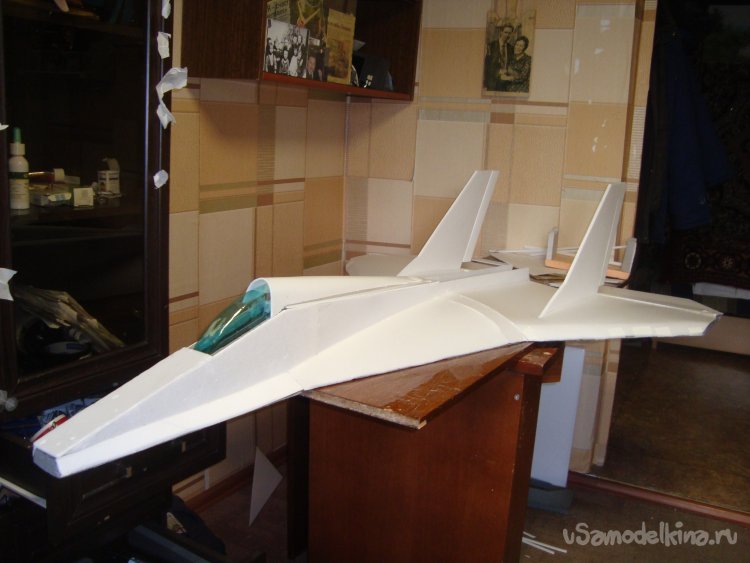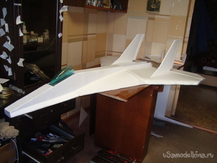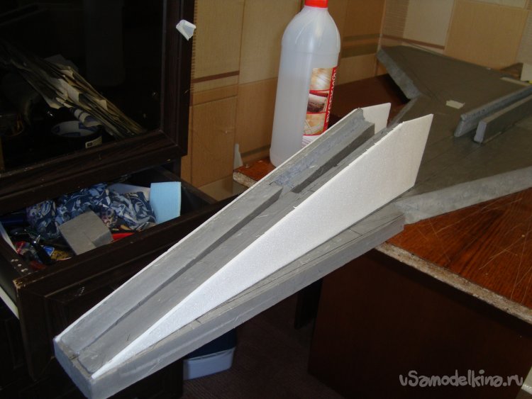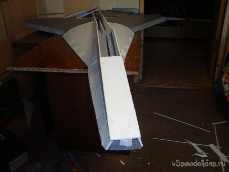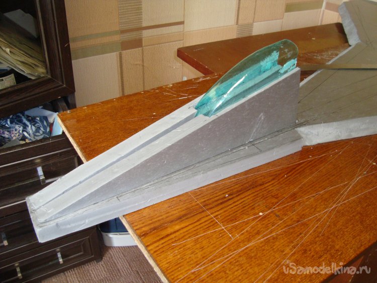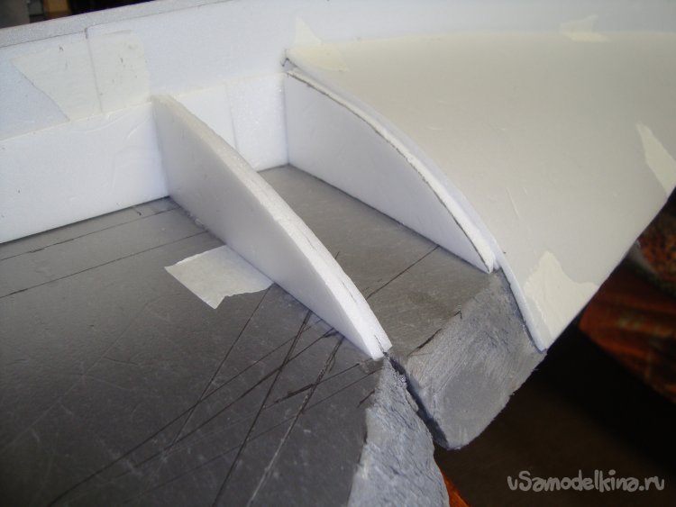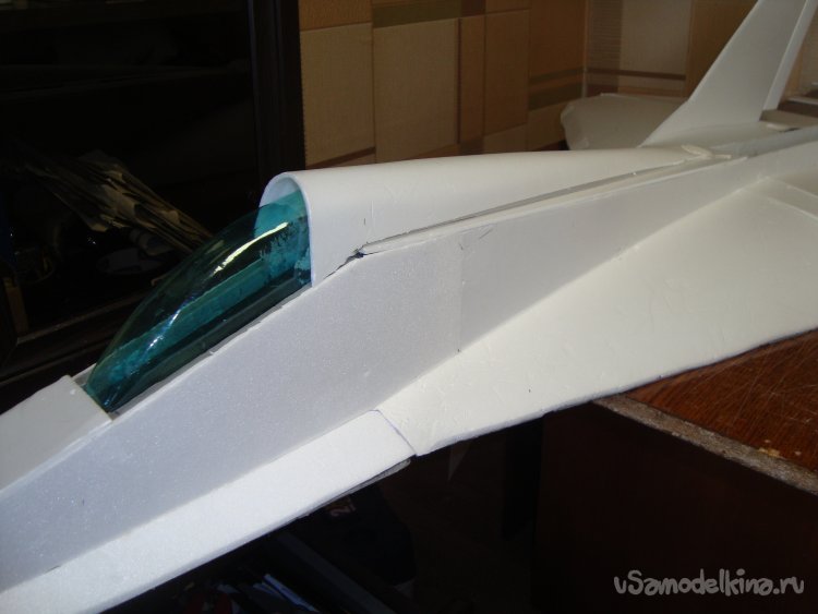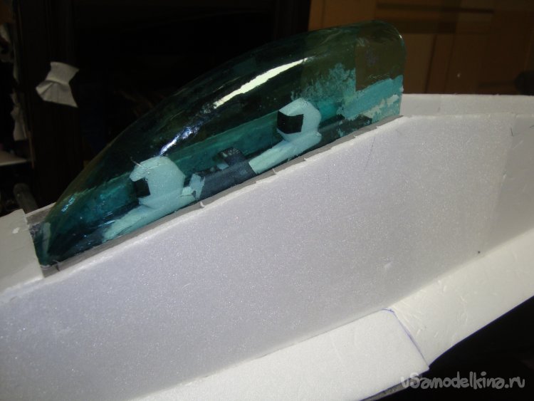 Из утеплителя вырезал несущие , вертикальные перегородки в носовую часть фюзеляжа, на которые будут крепиться элементы кабины.