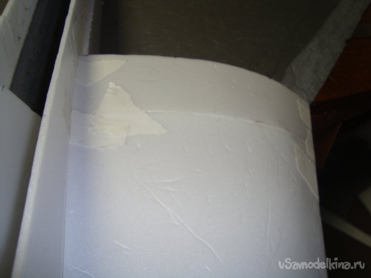 Начал наружную облицовку фюзеляжа белой. Потолочной плиткой.