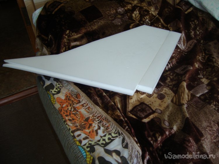 Учитывая габариты новой авиамодели. для увеличения прочности, решил использовать листовой утеплитель размером 600 х 1200 х 2,3 мм.