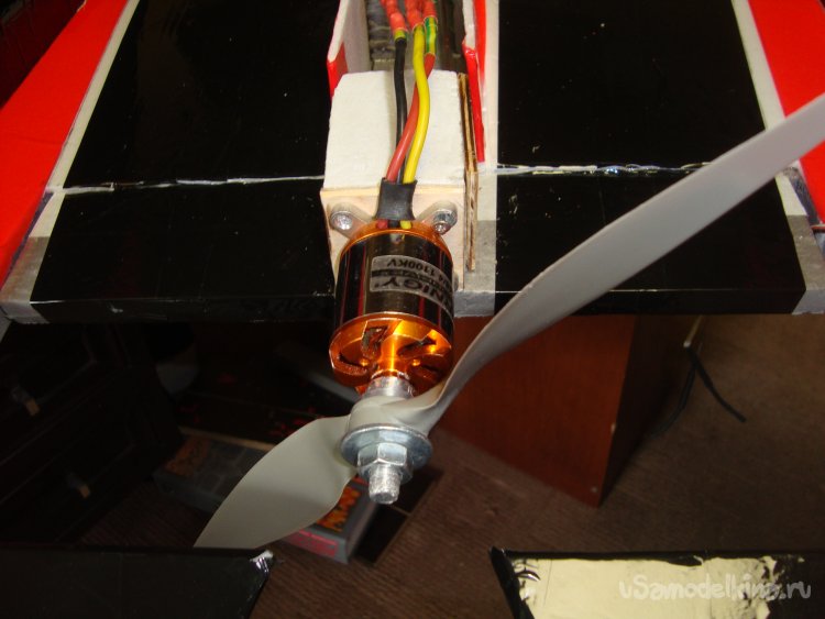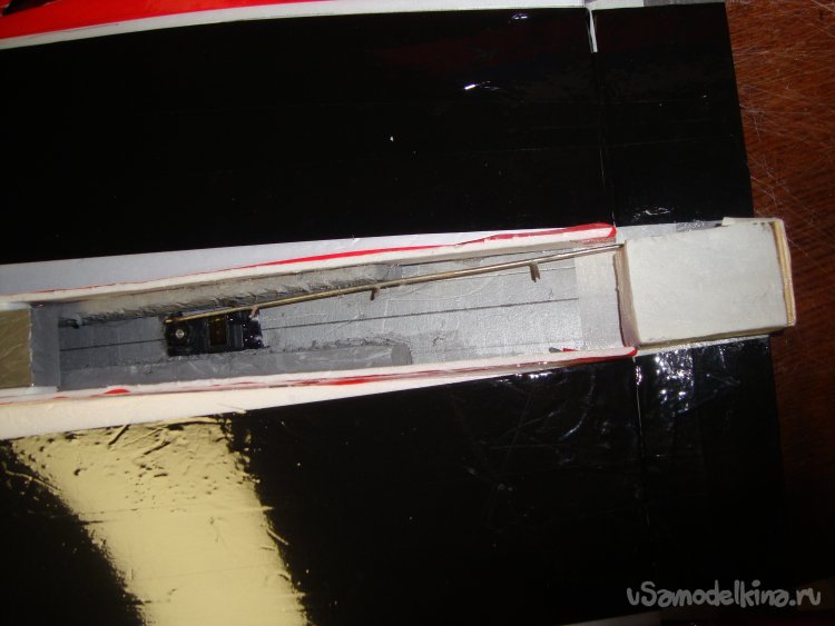 Вклеил кусочек утеплителя с фанеркой, толщиной 3 мм. для установки мотора на руль высоты.