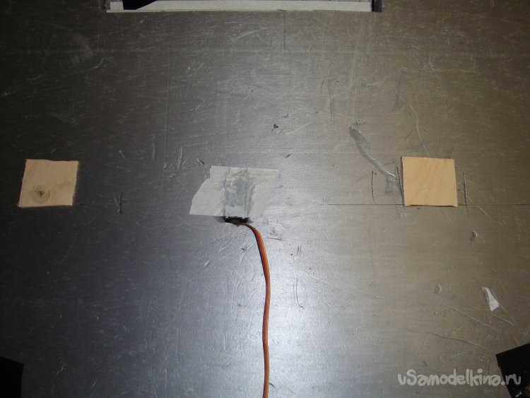 Что бы усилить место крепления тяги, вклеил кусочек фанеры, толщиной 3 мм.