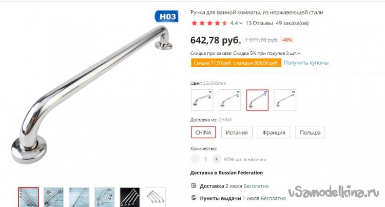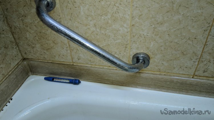 Ручка весьма удобна для ванны, и стоит недорого, и монтируется легко. Она из нержавейки, анодированную, хромированную или никелированную брать не стоит, не так долговечны и прочны.