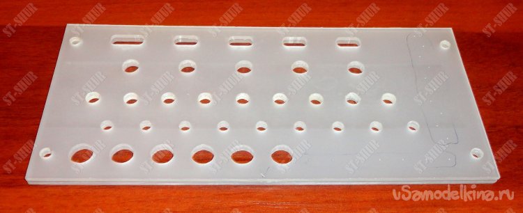 С помощью осциллирующего МФИ, были вырезаны две полки (из матового акрила), размерами 253х114х3мм.