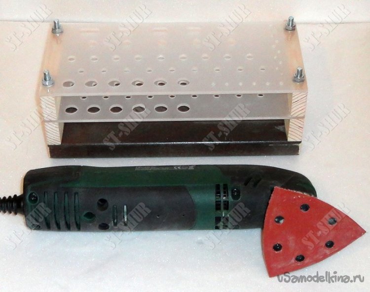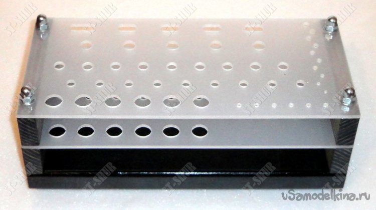После их разъединения, в верхней полке просверлены дополнительные отверстия под сверла от 1,5мм до 5мм и буры (и прочую оснастку для МФИ «Dremel»).