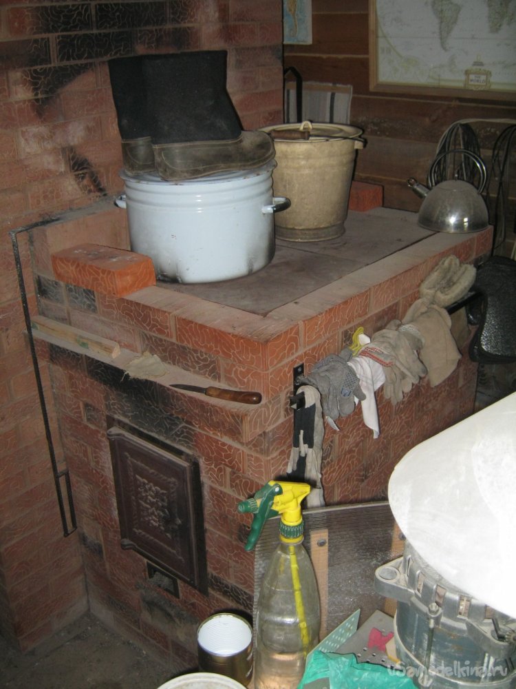 Фото 4. Железная уличная водогрейная печь. Обычно, применяется для приготовления горячей воды в прохладные и пасмурные дни весны и осени. Да и не всякое лето у нас жарко. Стерилизует посуду, варит варенье. Периодически участвует и в наших химических экзерсисах.
