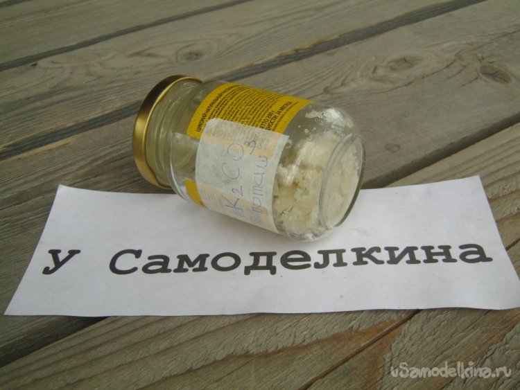 Поташ – углекислый калий (К2СО3), применяется самостоятельно для аналогичных целей и является промежуточным звеном к более сильной КОН.