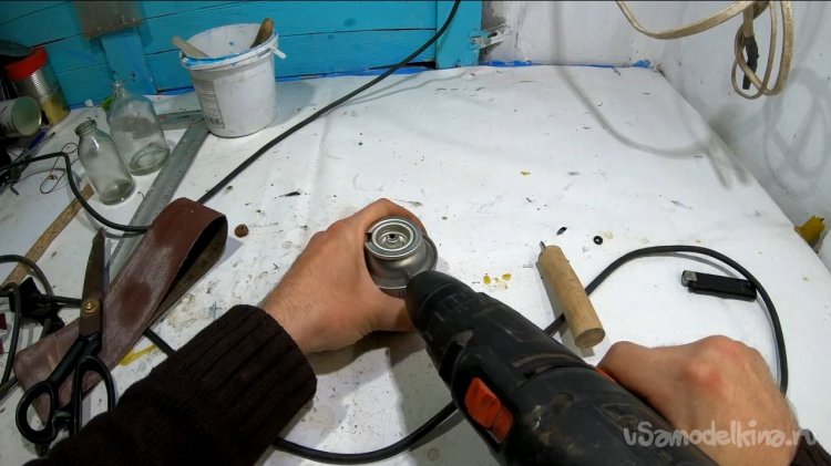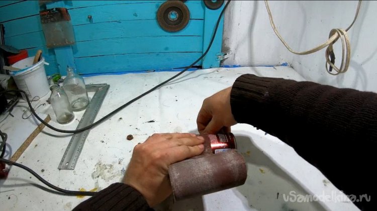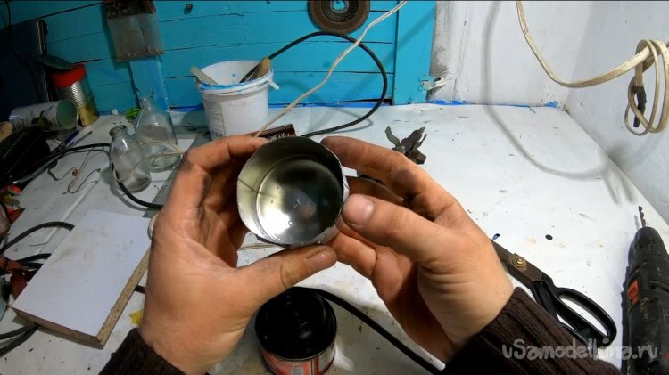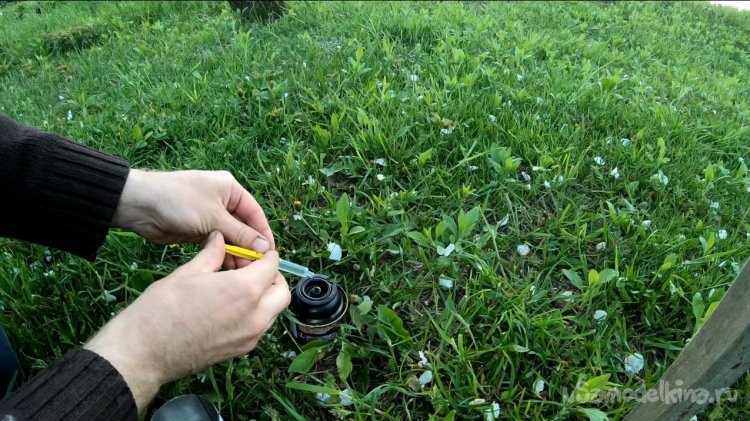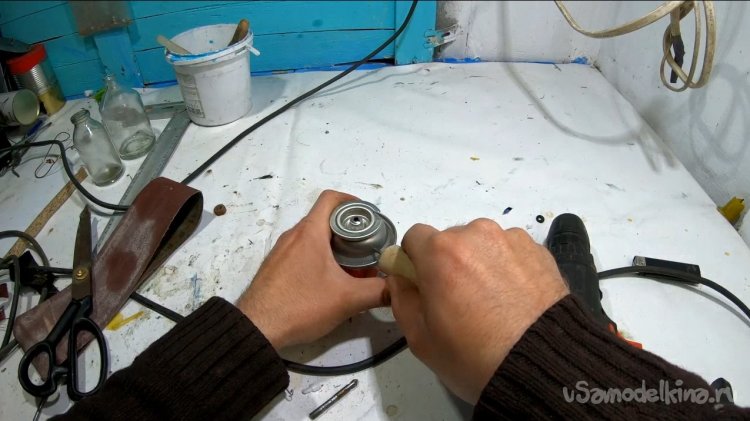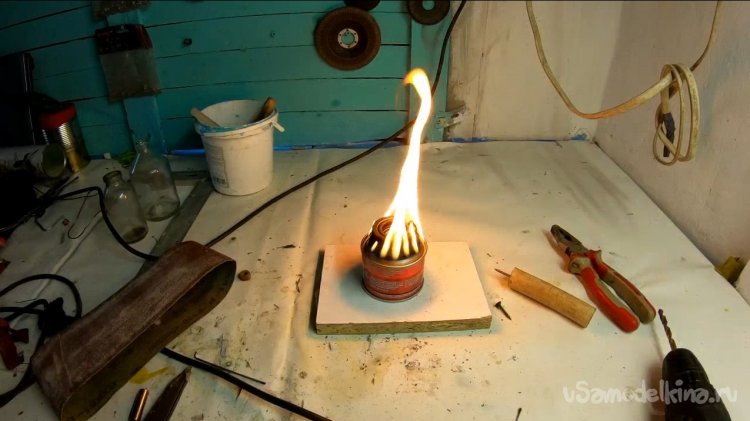Намечаем шилом и сверлим отверстия. Вот и все, примус готов, наливаем примерно половину бачка бензина, а может и больше. Также бензина нужно налить в канавке сверху, это надо для первичного прогрева примуса.