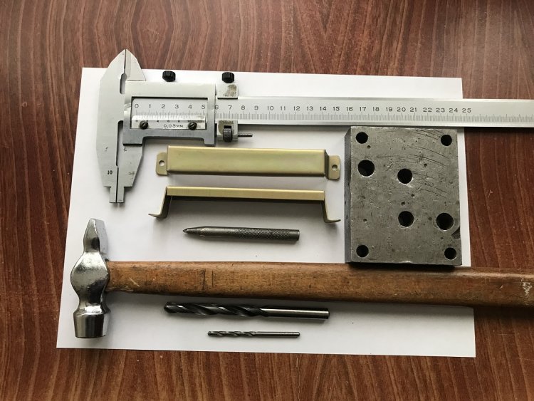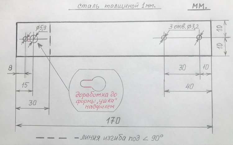 В авторском варианте КМП были использованы готовые угольники. Их нужно было только разогнуть, разметить штангенциркулем, просверлить дополнительные отверстия и сверлом большего диаметра снять заусеницы.