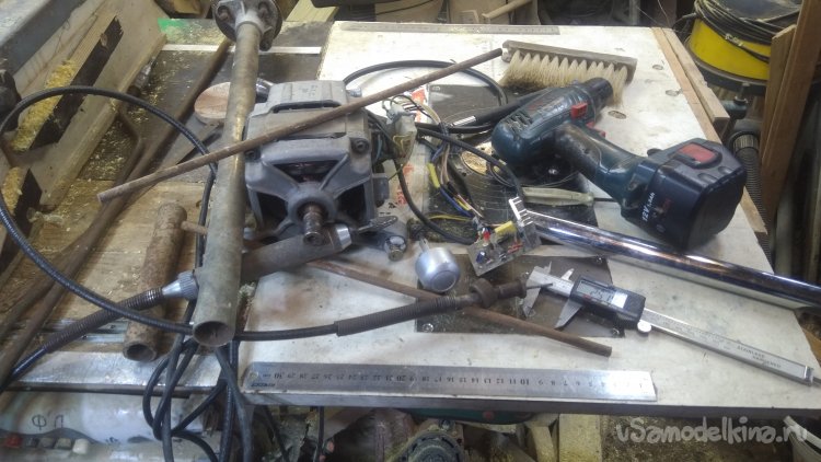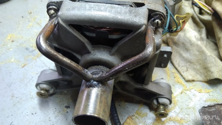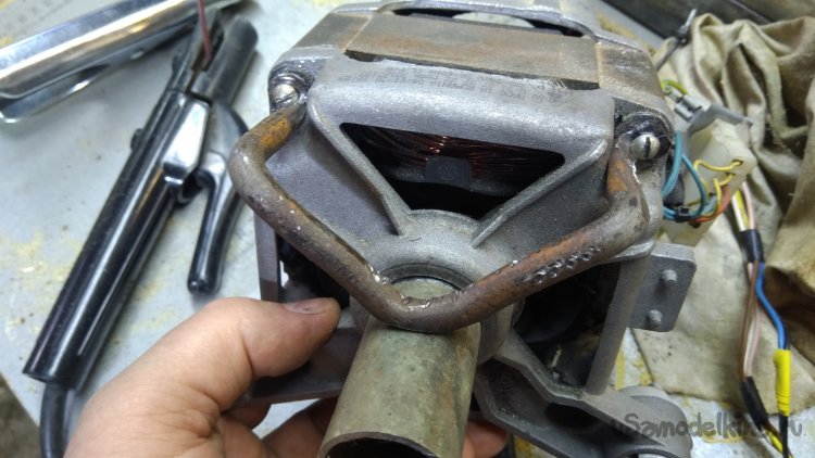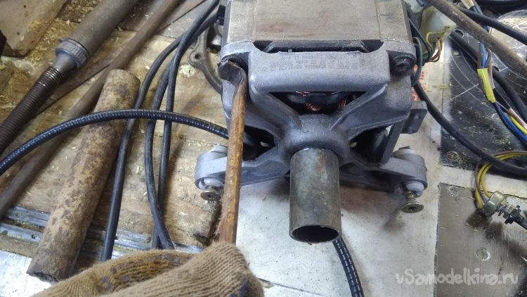 Так как мотор громкий и недостаточной мне мощности, решил заменить его на мотор от стиральной машинки, они довольно тихие и достаточной мощности. Ватт 400 примерно.
