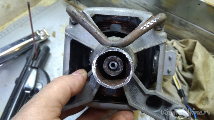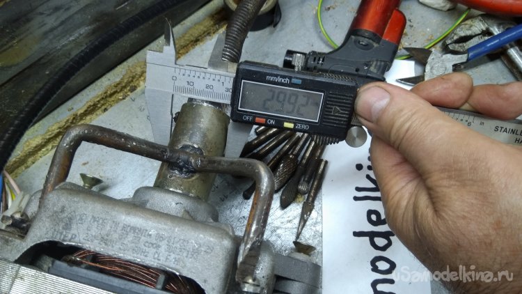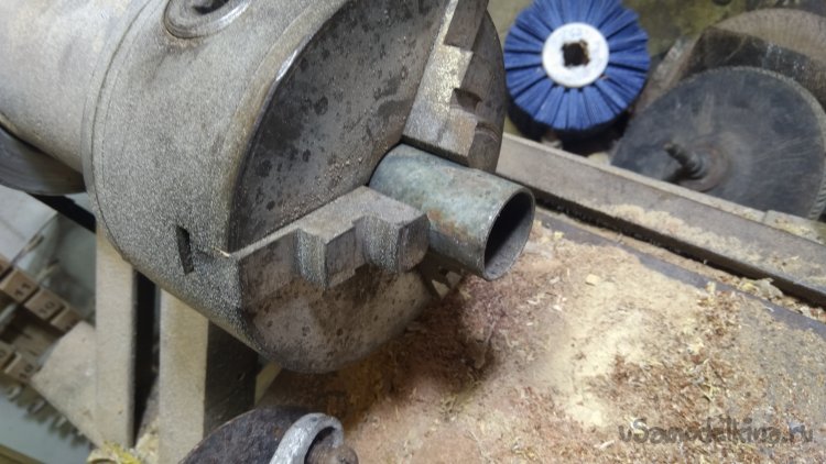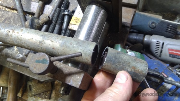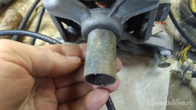 Труба немного больше нужного мне диаметра, но я могу заточить ей на конус и она встанет в гнездо подшипника мотора.